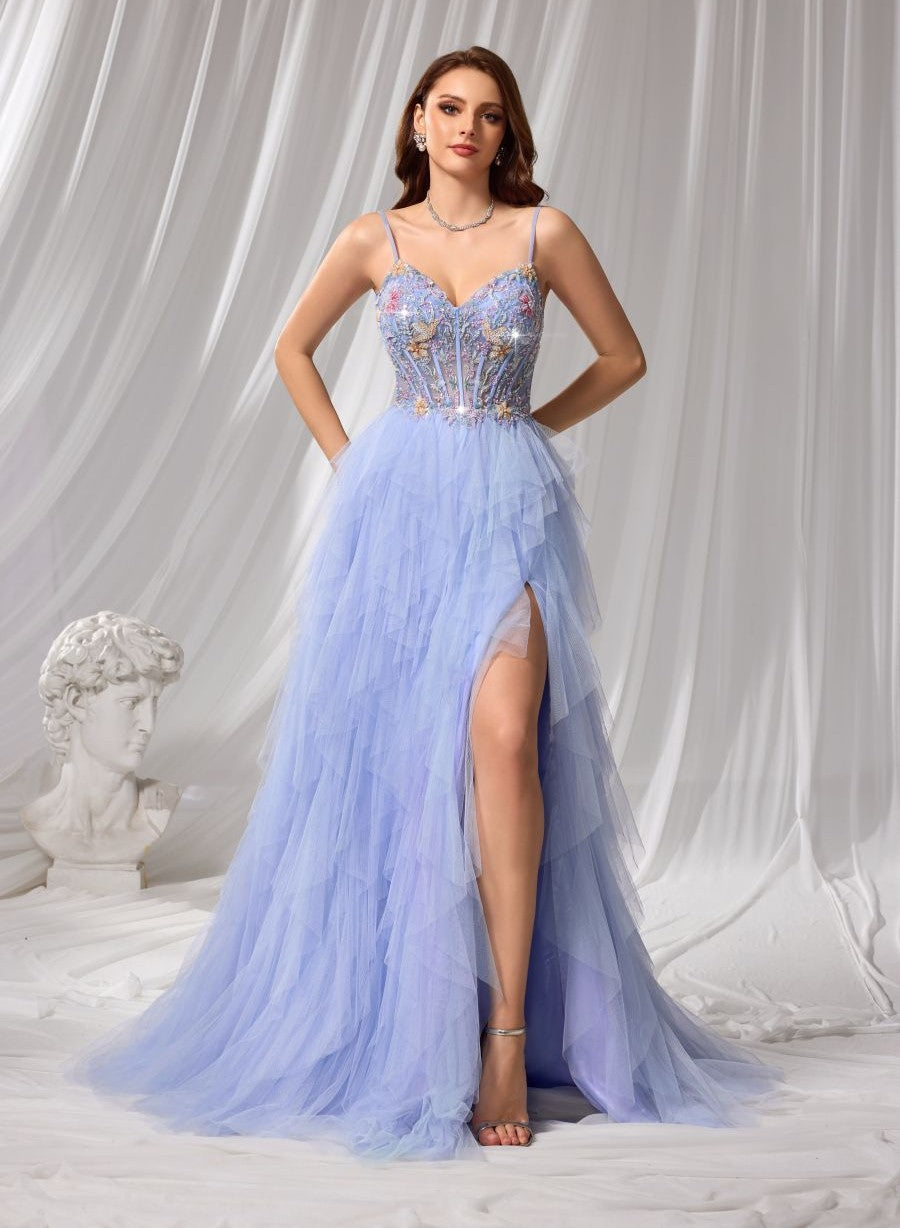 Vintage Light Blue Halter Neck Mermaid Evening Gown SH019