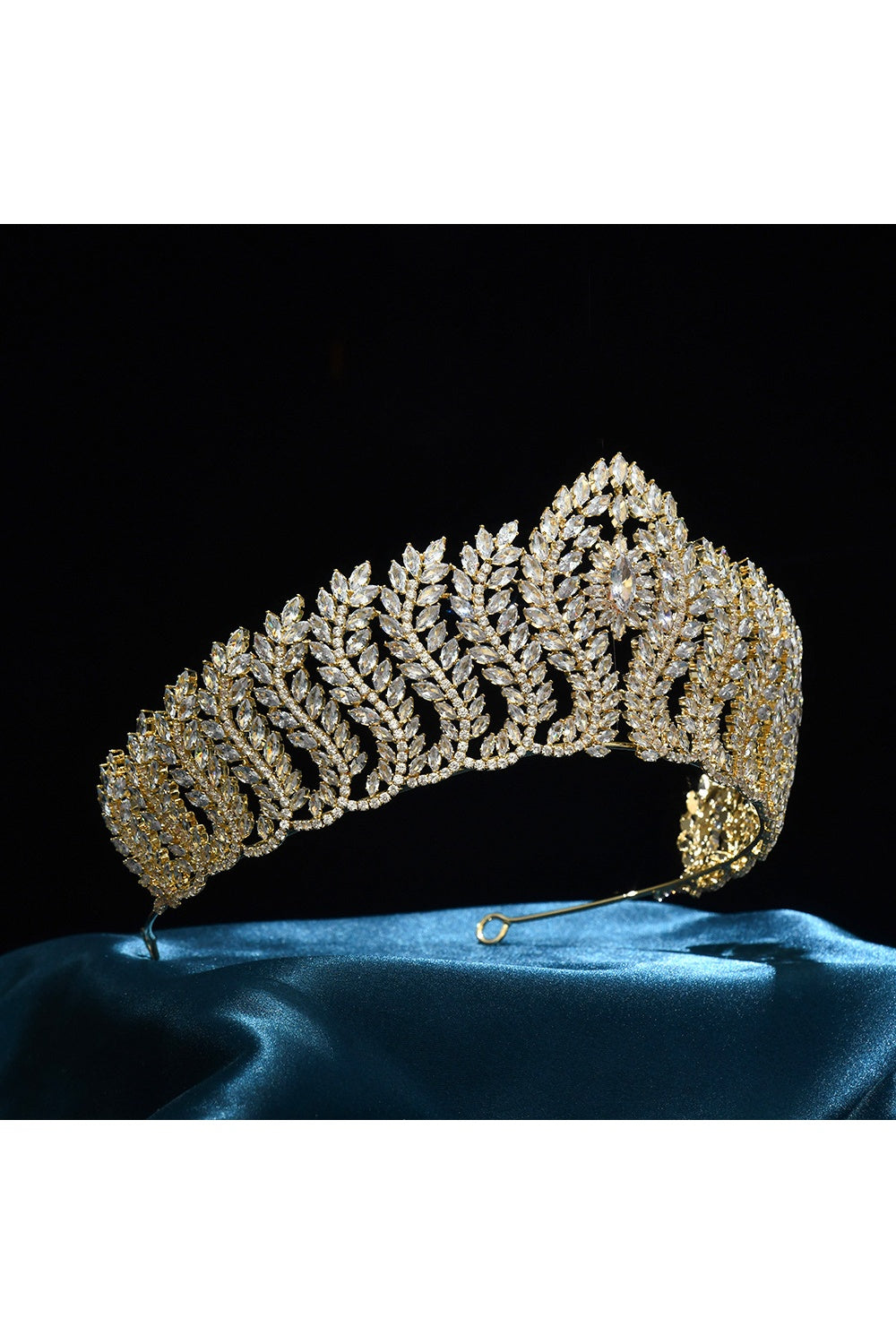 Gold Crystal Leaf-Tiered Tiara Crown HP017