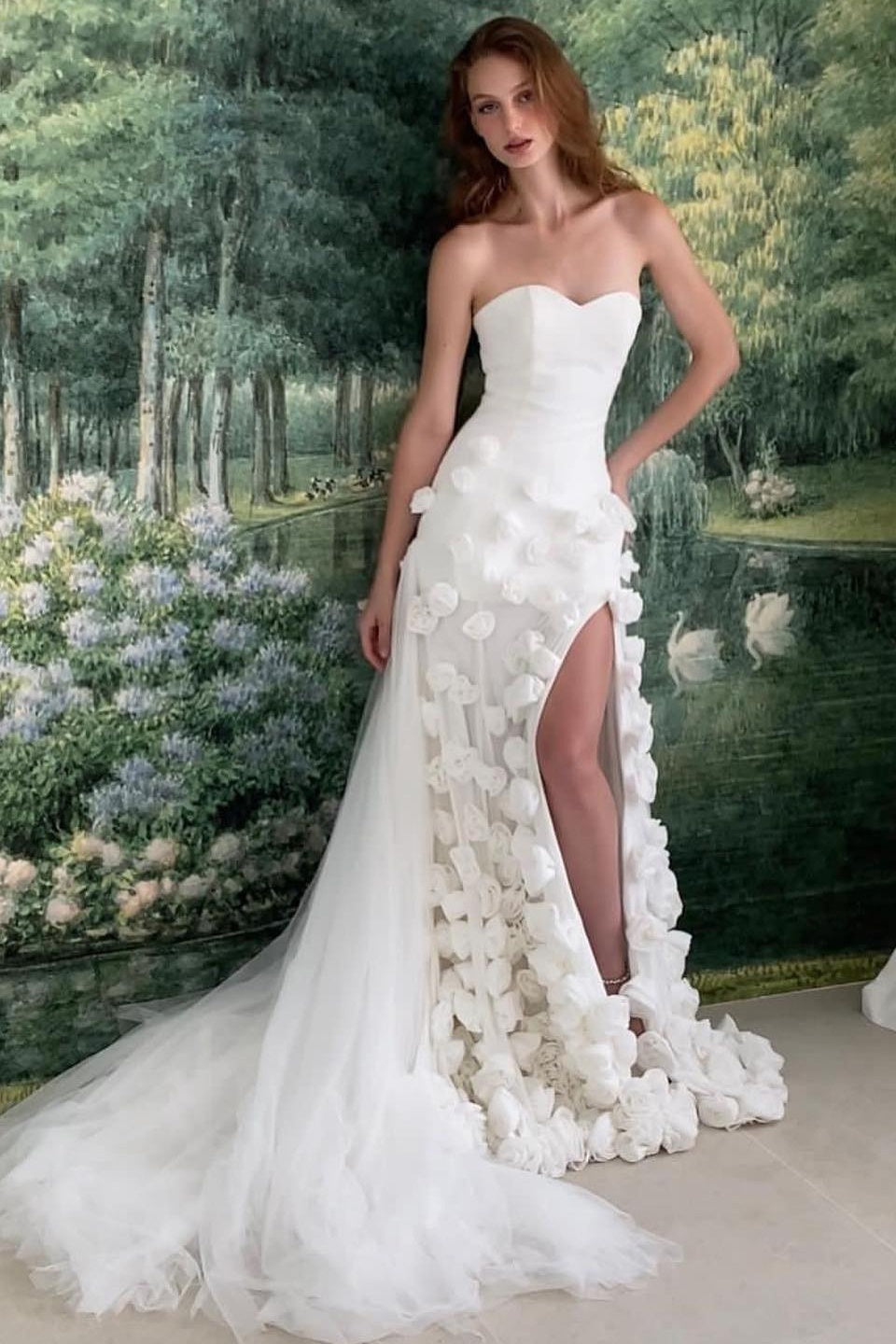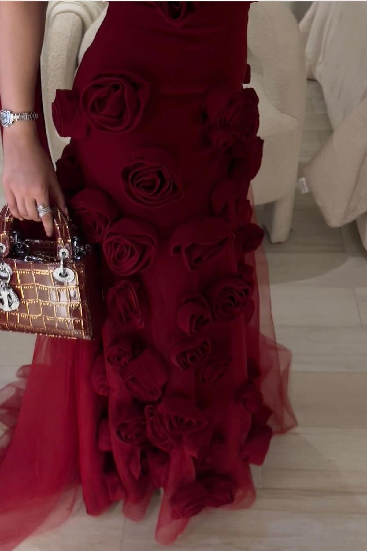 Modest 3D Rose Strapless Mermaid Evening Dress with Train SS207