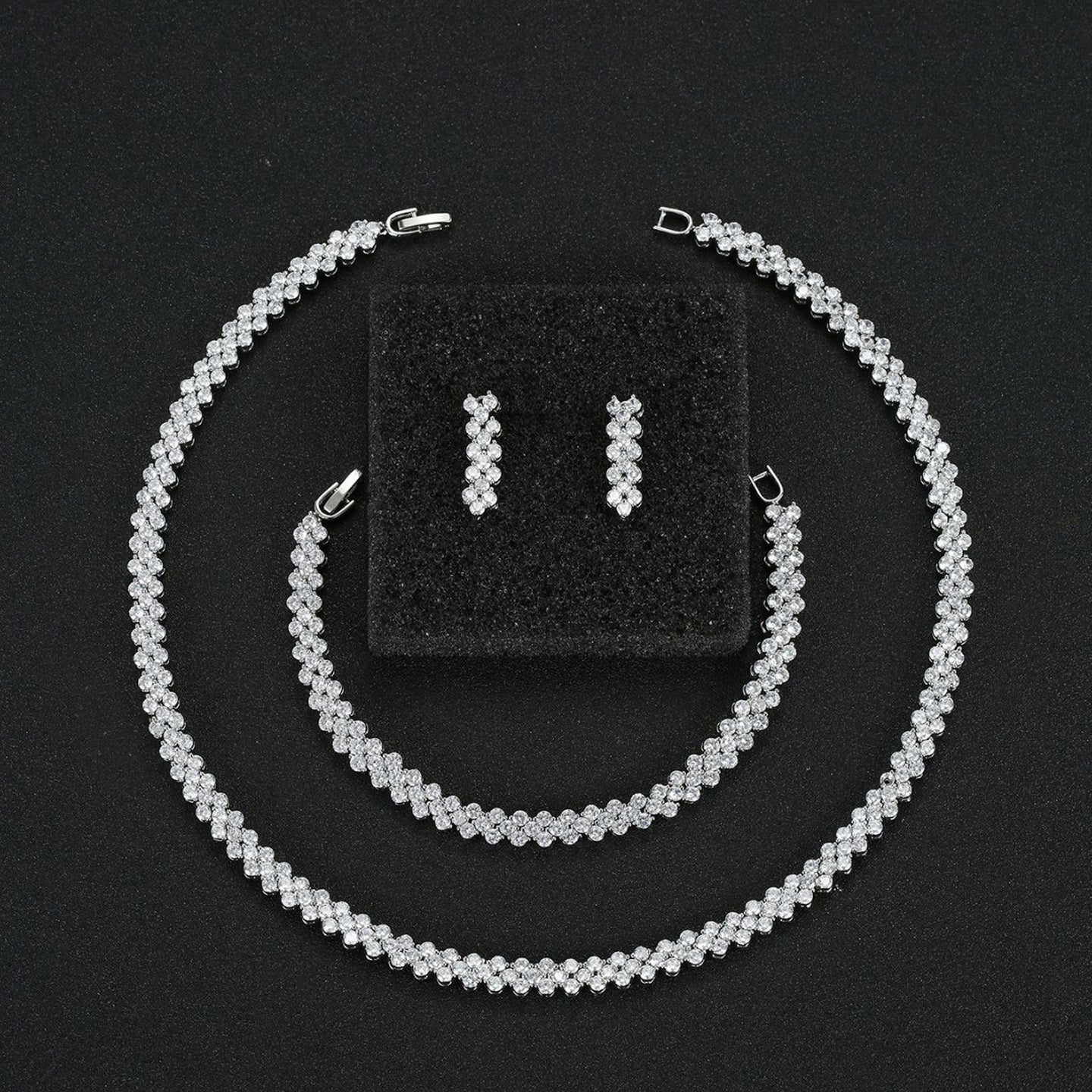 Roman Zircon Necklace Earrings Bracelet Set JW006