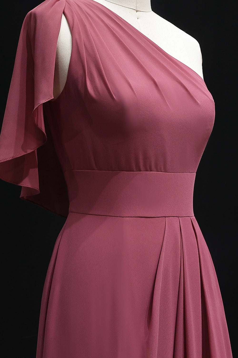 Dusty Rose One-Shoulder Chiffon A-Line Bridesmaid Dress BS028