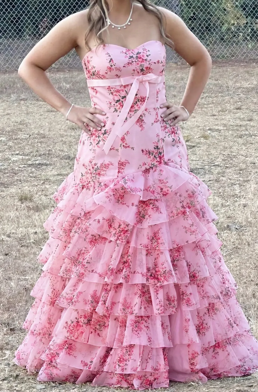 Elegant Pink Floral Tiered Ruffle Mermaid Prom Dress SH706