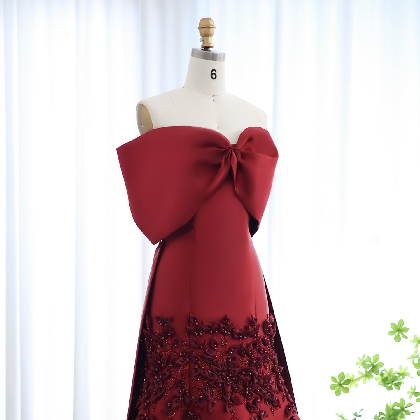 Luxury 3D Flowers Pink Off Shoulder Evening Dress SS464