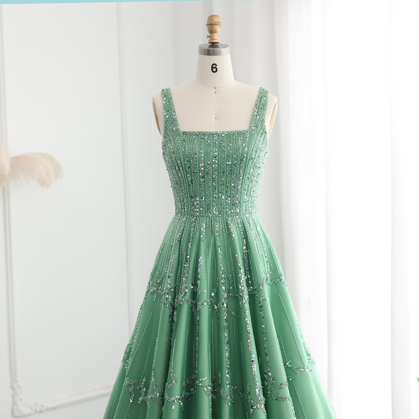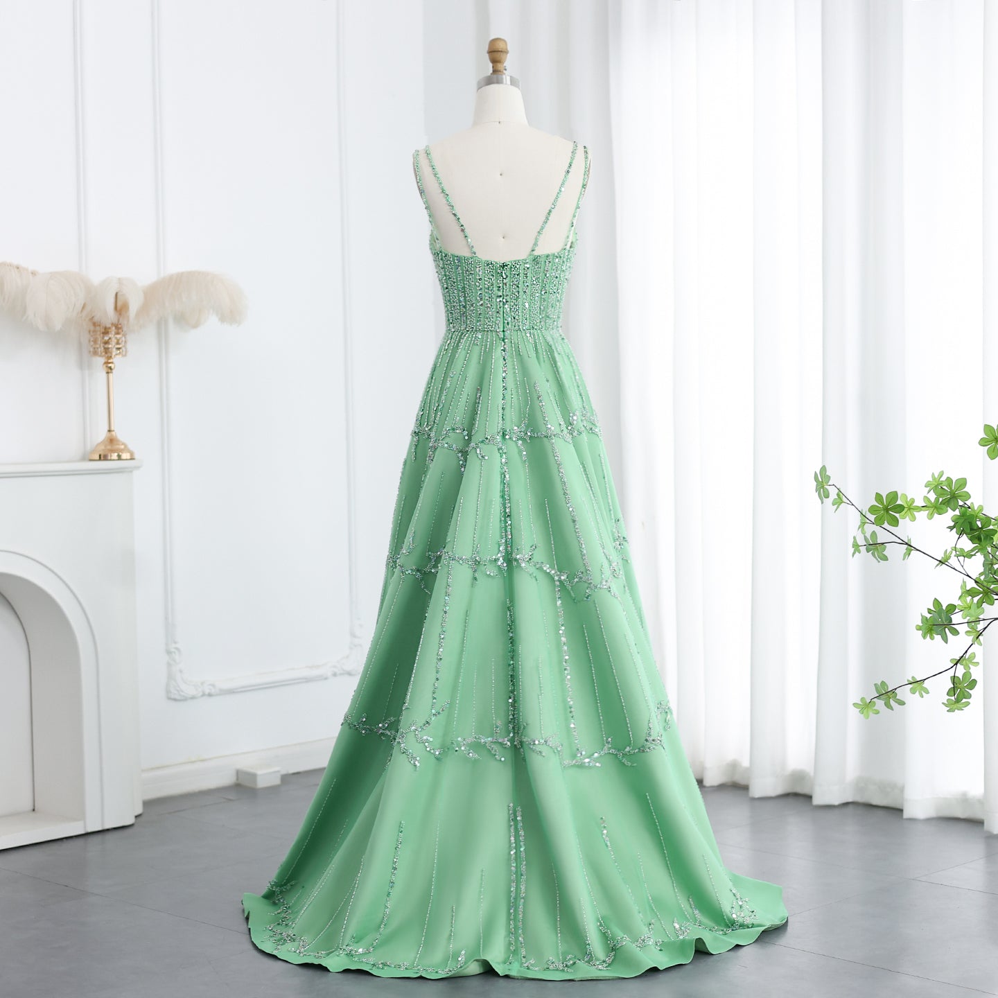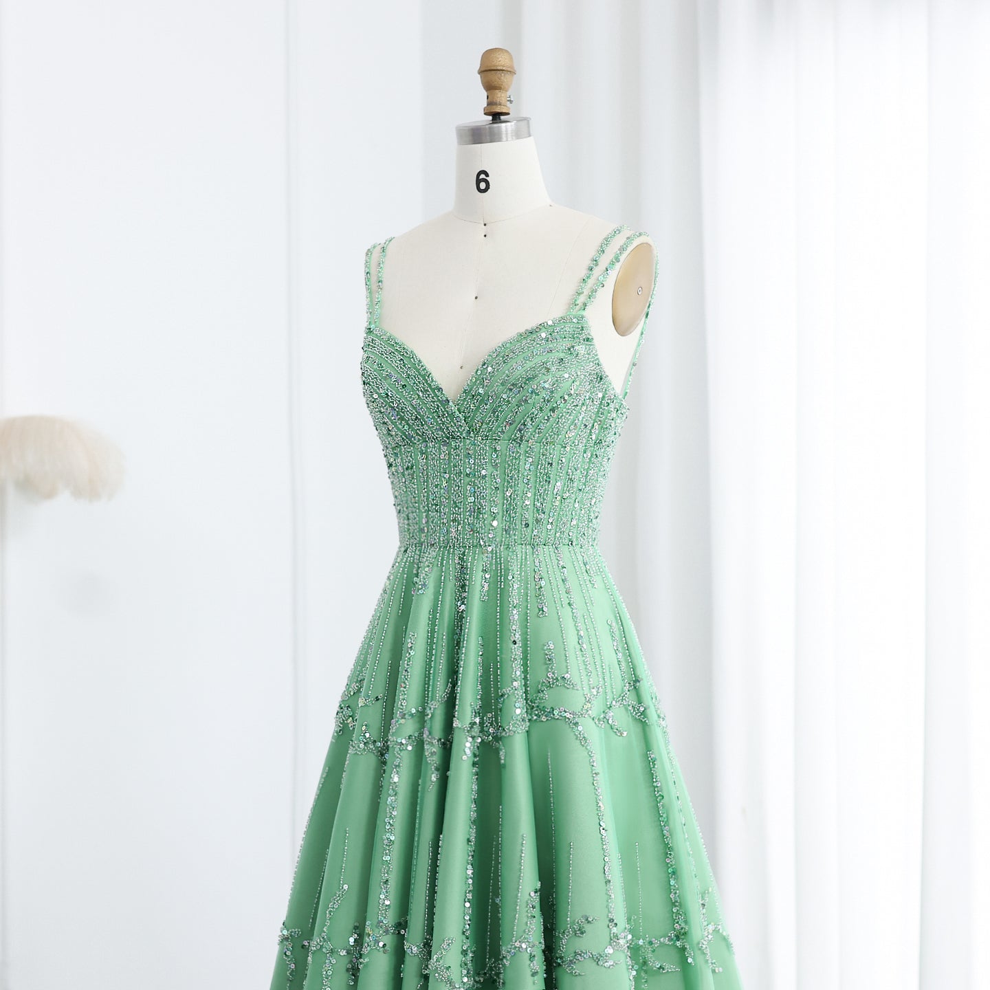 Luxury Beaded Green Spaghetti Evening Dresses SS225