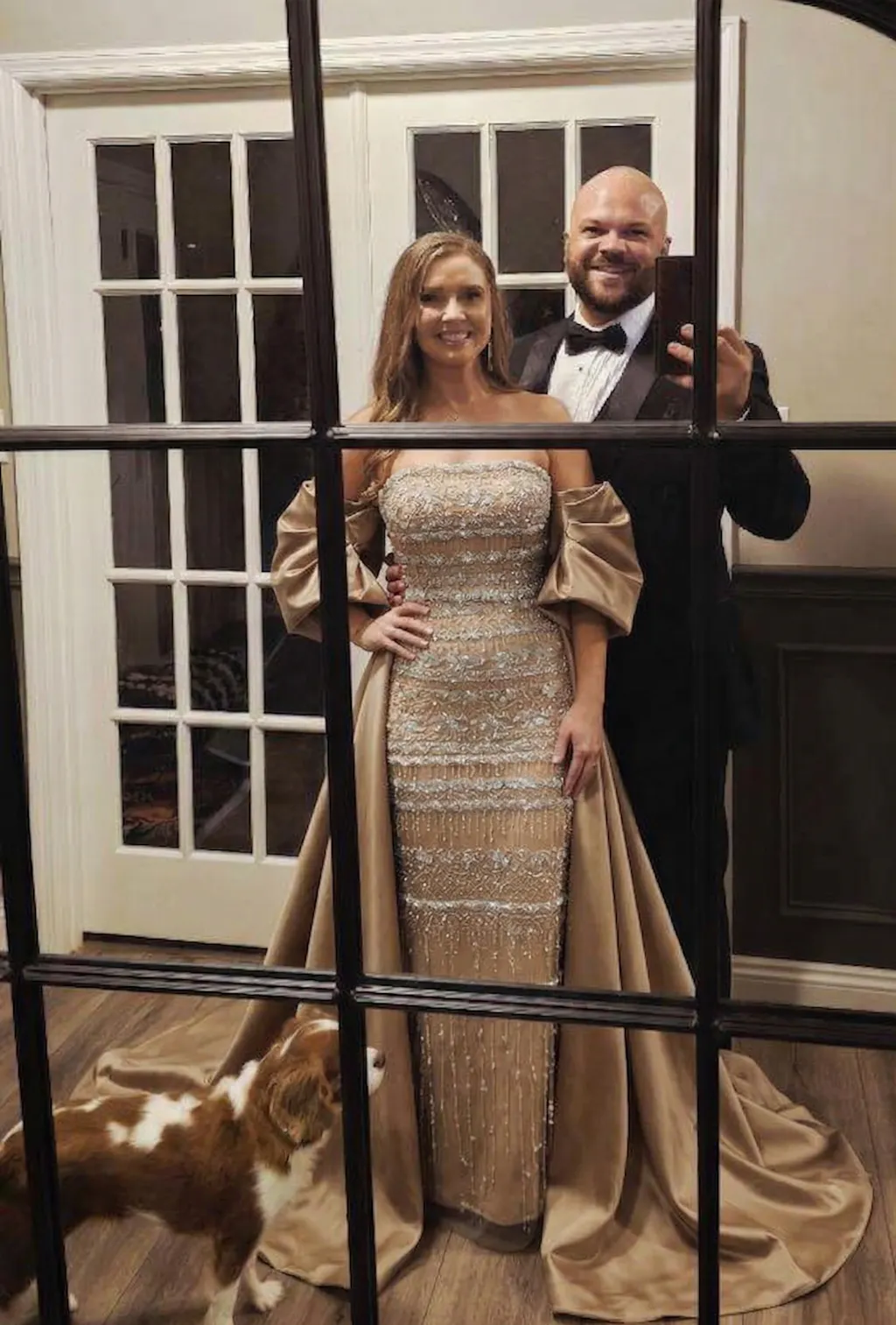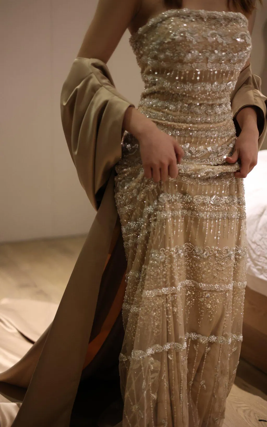 Luxury Beaded Off The Shoulder Sparkly Champagne Evening Dress SS238